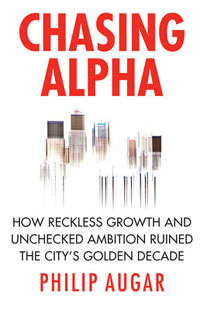 提出類似批評的,也有來自金融界的作者。Philip Augar 曾經在投資銀行高層工作二十多年,他在2000年出版的《紳士資本主義之死》(The Death of Gentlemanly Capitalism)非常受歡迎,2009年他出版了新書《追逐超級利潤》(Chasing Alpha: How Reckless Growth and Unchecked Ambition Ruined the City's Golden Decade)。在書中他指出在投資銀行和對沖基金領域,追求超級利潤(即所謂的Alpha,與“普通利潤”Beta 相對)的沖動,造成了大批交易員和基金經理無視風險,盲目冒進,濫用高杠桿金融工具,造成災難性的后果,摧毀了本世紀初金融業的黃金時代。