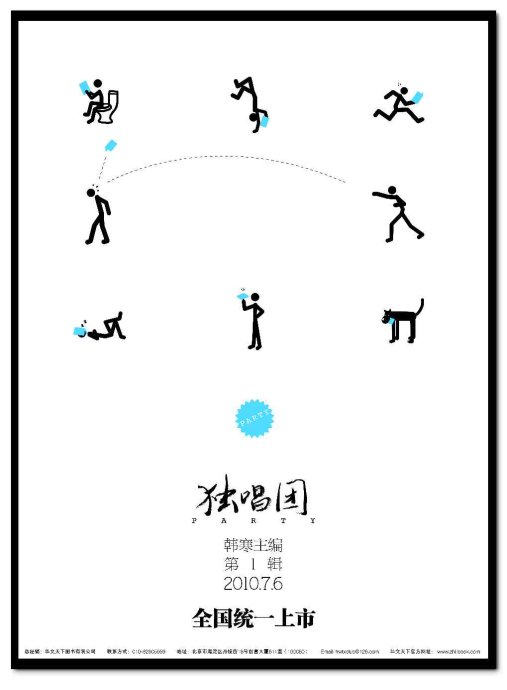 周末在建外SOHO和新光的咖啡店里,都看到了手持該本牛皮紙封皮大書的男女,韓寒好看的字跡在商場的燈光下閃閃發光,大老遠看見大開本的牛皮紙,不要懷疑那是個文件袋,那一定是《獨唱團》。同一間咖啡店里,像接頭暗號一般——你桌上有,我沙發扶手也有,我倆是一撥的,看一眼就夠了,噓,別說話。