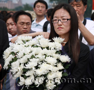 來自齊齊哈爾的張女士一家13人,包括兩個尚未出生的孩子, 13點就來到天安門廣場。像很多人一樣,他的兒子和女婿在忙著拍照留念,“特意叫孩子們一起過來,讓他們也接受一項特殊的教育?!彼f, “太慘了,那么多大活人一下子就沒了,心里特別難受?!彼呀浂啻尉杩?,但這似乎并沒有舒解,也許三分鐘的默哀,在告慰死難者的同時,也給張女士這樣的生者以力量。