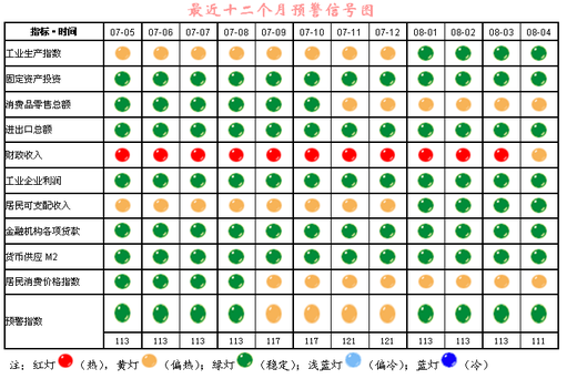 今年1月以來,工業生產指數、固定資產投資、進出口總額、工業利潤、居民可支配收入、金融機構各項貸款、貨幣供應(M2)都呈現“穩定”的綠燈狀態,惟有居民消費價格指數、消費品零售總額始終處于“偏熱”的黃燈狀態,而4月份財政收入則由一季度“熱”的紅燈狀態轉為“偏熱”的黃燈狀態。