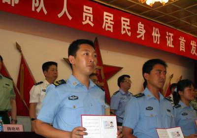 網絡版專稿 記者 宋清華 中國部隊人員居民身份證首發式7月31日在北京舉行,標志著軍人沒有居民身份證的歷史將結束。