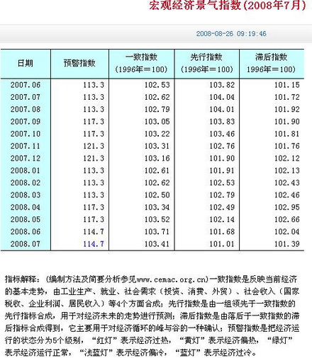 網絡版專稿 記者 宋清華 國家統計局8月26日發布的08年7月宏觀經濟景氣指數及預警信號圖顯示,我國7月宏觀經濟處于穩定狀態。但居民消費價格指數(CPI)自07年9月以來,已經連續11個月處于偏熱狀態。