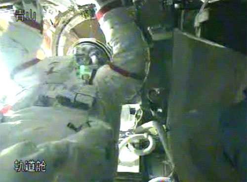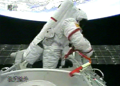 9月27日航天員結束太空行走,開始返回軌道艙。