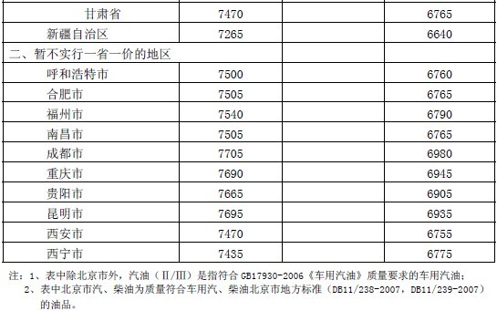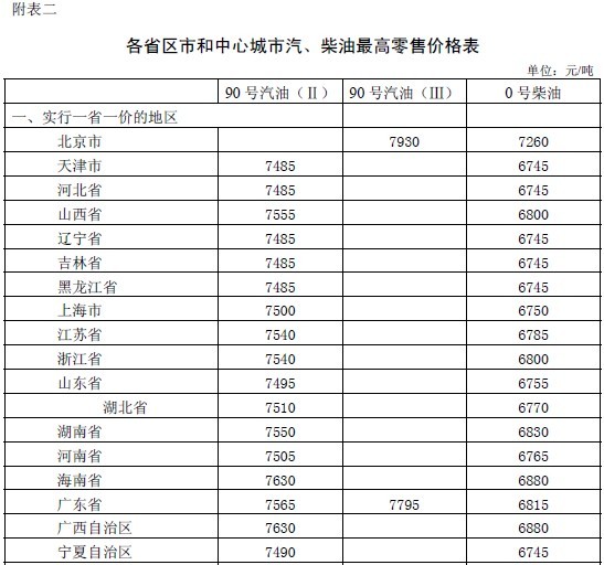 三、各地汽、柴油最高零售價格等額提高。調整后各?。▍^、市)和中心城市汽、柴油最高零售價格水平見附表二。各?。▍^、市)價格主管部門按規定的品質比率調整汽、柴油非標準品最高零售價格。