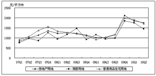 - 二季度商品房用地價格環比降10% 2010-07-28