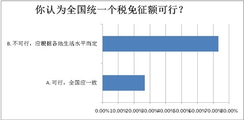 但對于全國統一個稅免征額是否可行的問題,經濟觀察網73.21%的網友認為不可行,應該根據各地生活水平而定。