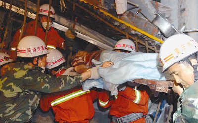 17日18時10分,被埋124個小時后,31歲的卞剛芬被來自河南的消防隊員救出。她意識清醒,對周圍的人們說:“感謝”。她是兩天來河南省鄭州市消防支隊搶險救援分隊在什邡市瑩峰化工廠救出的第二位幸存者,前一位幸存者在廢墟下堅持了105個小時。