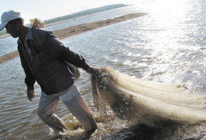 當地的中國居民大多以捕魚為生,江里美味的大馬哈魚,每年都可以為他們帶來不菲的收入。對于第二天就要舉行的“中俄界碑揭牌儀式”,當地漁民多數已知道,但是這并沒有打亂他們的正常生活。在江邊,很多漁民依然在悠閑地整理著魚網。