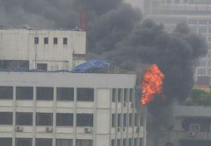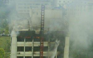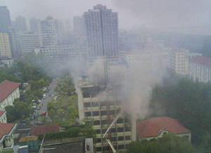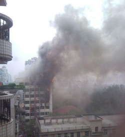 10時許,湖北武漢市政府辦公大樓頂層發生火災