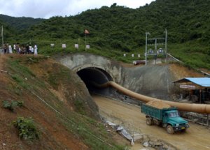 從4日晚至5日早,救援隊一直采取在塌方處向里橫向挖掘土方的施救方案,5日11時許,救援隊開始實施新的施救方案:將兩臺挖掘機吊到隧道頂部,從上往下縱向挖掘,與橫向挖掘互補,力求盡快搶救出被困在隧道內的8名工人。