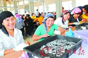 記者在車間看到,一個個玩具車模合金鑄件在工人手中熟練地翻轉,銼刀和磨刀也富有節奏地交替使用,新疆籍工人按照工作流程要求,將一個個打磨好的玩具車模送往下一道工序。