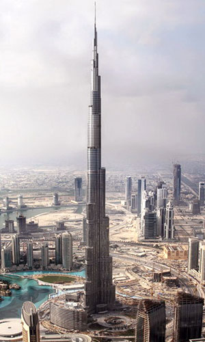 作為世界第一高樓的迪拜塔,是于2004年開工的,原計劃將去2009年9月完工,但由于受到金融危機的沖擊,竣工日期才延期至今。這棟高樓耗材大約33萬立方米混凝土和大約3.14萬噸鋼材。樓高160層,49層為辦公場所。