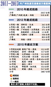 經濟觀察網 記者 周靚 據廣州日報報道,4月27日,《關于廣州市2011—2015年軌道交通建設方案的報告》提交本次廣州市人大常委會會議審議。報告描述了未來廣州城市軌道交通發展的路線圖:2011年至2015年廣州建設軌道交通總投資約1097.84億元,加上目前在建線路、規劃調整線路投資及2016年至2020年新線前期研究費用,涉及總投資1893億元。據了解,擬納入2015年前建設的新線有9條。