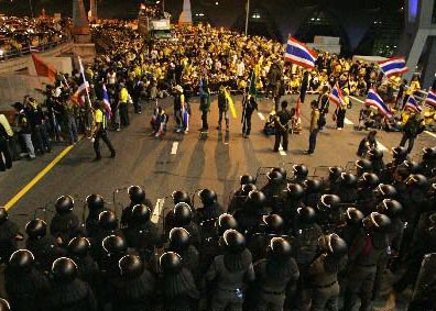 由于民盟舉行的大規??棺h活動危及機場安全,泰國機場管理局25日下令關閉素萬那普國際機場。目前,所有出港航班已經被迫取消,一些臨近入港航班則仍可降落在該機場。機場管理局官員說,如果局勢繼續惡化,那么入港航班則可能被要求降落在曼谷周邊的其他機場。