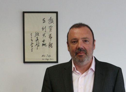 一進辦公室,我就看到在Alexakis先生辦公室的墻上掛上了中遠集團CEO魏家福船長的書法,上面寫著“投資希臘,共利共贏”,落款的時間是五月二十日?!斑@是魏船長的“真跡””,Alexakis先生說。