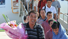 (被日方非法抓扣的14名中國漁民乘中國政府包機安全返抵福州)