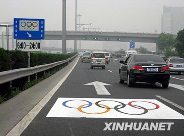 北京交管部門介紹,奧林匹克專用車道將從7月5日起陸續施劃,施工將涉及長安街以及二、四、五環路等道路。車道自7月20日啟用,至9月20日止,專供奧林匹克車輛通行,單向總長285.7公里。