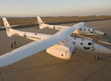 7月28日,在美國加利福尼亞州莫哈韋沙漠的航空航天機場,英國維珍集團展出太空游項目關鍵裝備 -- 運載載人飛船的母船“伊芙”?!耙淋健睋碛须p機身,裝有4臺發動機,翼展大約43米。機翼中部下方可懸掛載人航天器“太空船二號”,可以搭載2名駕駛員和6名乘客進入太空。預計太空游首發團將于2010年成行。