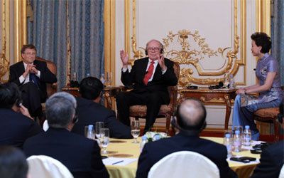 晚宴首先進行了巴菲特、比爾蓋茨、楊瀾的三人對話,會場有同聲傳譯以便交流。據悉,此次會議由楊瀾及“陽光文化基金會”協助、“蓋茨基金會”承辦。記者從比爾及梅琳達·蓋茨基金會北京代表處獲悉,此次參會的有50位中國商界、慈善界人士,比爾蓋茨表示,相信當代中國企業家能為慈善事業作出貢獻。