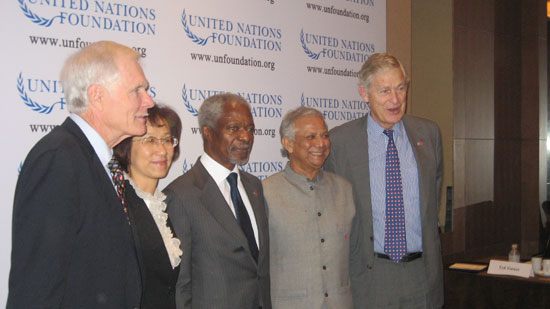 安南與其他聯合國基金會董事10月28日在北京參加了媒體見面會
