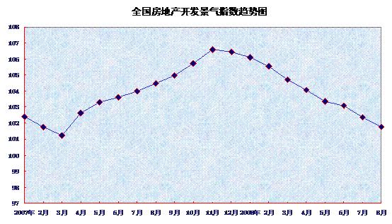 網絡版專稿 實習記者 韋承武 8月份,“國房景氣指數”為101.78,比7月份回落0.58點,這已是連續第9個月回落。同比去年也回落了2.70點。