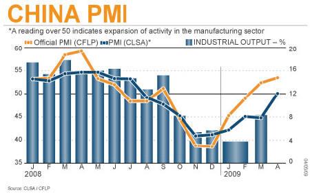 中國物流與采購聯合會發布的中國4月份采購經理人指數由3月份的52.4升至53.5,為該指數第二個月升至50上方,之前該指數連續5個月處于50下方。