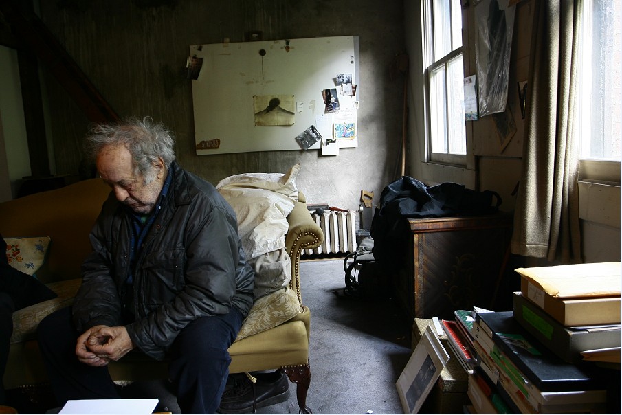 羅伯特·弗蘭克平時住在加拿大海邊的小島上,回到紐約,就出沒于東村的工作室和家中。老人走路腳步拖地,已經離不開拐杖,但是照相機還是不離左右。