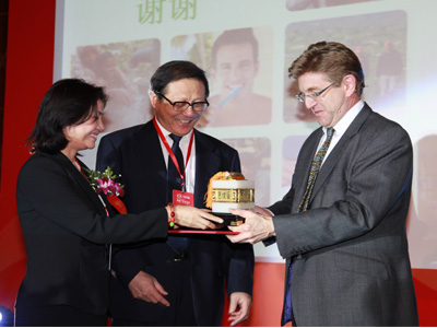 中視金橋國際傳媒集團CEO劉矜蘭為聯合利華全球首席營銷官凱斯·韋德頒獎