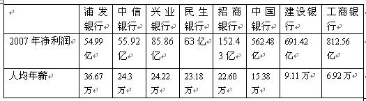 網絡版專稿 記者 鄧美玲 昨天兩市14家上市銀行2007年年報全部發布,銀行員工的薪酬排名立馬一目了然。從數據來看,浦發銀行以員工人均年薪36.67萬元居上市銀行榜首,而墊底的則是工商銀行,它的員工人均年薪只有6.92萬元。
