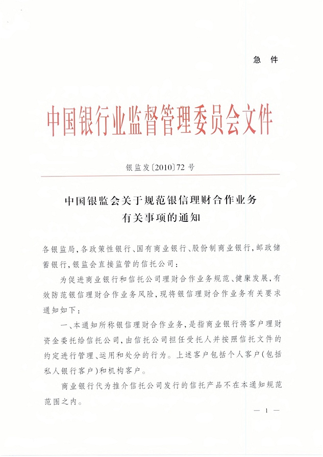 中國工商銀行投行研究中心分析師史晨昱告訴記者,本次《通知》下發的背景和文件的精神有明顯的不同于以往之處?!锻ㄖ返亩ㄎ缓蜋C制選擇充分彰顯了監管機構規范銀信理財合作業務的決心。