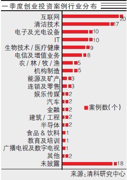縱觀2010年第一季度中國創投市場投資行業分布,可以映射出當前創投的熱點投資領域。清科集團的統計數據顯示,從投資案例數來看,互聯網行業本季共發生20起投資,領先于其他行業。經過千禧年的互聯網泡沫后,創投對“.com”投資十分謹慎,而十年后的今天,中國互聯網企業無論經營理念還是商業模式都更加成熟,而巨大的市場發展空間也吸引著VC的關注。事實上,廣義IT領域的投資項目數量更是驚人,加上IT和電信及增值服務領域,TMT總共的投資項目接近40個,占據了總投資項目的半壁江山。