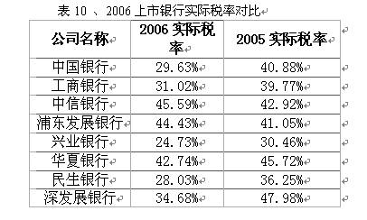 人力成本稅前抵扣的實施使得中國銀行和工商銀行兩家國有控股商業銀行的實際稅率大幅度降低,也成為了兩家銀行凈利潤高增長的原因之一?;谕瑯釉?,民生銀行的實際稅率水平較低,對于興業銀行來說,其較低的實際稅率是由于債券投資比例較高導致。相比而言,浦發銀行的實際稅率是最高的,該行沒有享受到部分人力成本的稅前抵扣。在中外資名義所得稅稅率統一到25%,且正常情況下人力支出均可予以稅前抵扣的政策在08年實施后,該行的實際所得稅率有望降至25%,直接提升凈利潤20%以上。招商銀行近日發布公告表示,2006年計稅工資稅前扣除事項得到批準,為此公司可少交所得稅約9.05億元。這將使得該公司的凈利潤由預期的59億元增加到68億元人民幣。