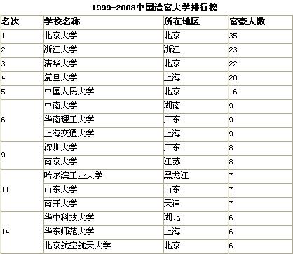 經濟觀察網 記者 鄧美玲 12月25日,中國校友會網發布了“中國造富大學排行榜”,北京大學因造就35名中國億萬富豪而問鼎榜首,校友財富合計1000多億元成為了中國“億萬富豪搖籃”,浙江大學和清華大學緊隨其后。