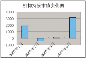 此前的統計數據顯示,機構持股市值自去年8月以來基本保持連續上升態勢。去年8月至今年1月,這一數值分別上升了400億元、485億元、600億元、1404.76億元、1882.34億元、1880.75億元。但今年2月份機構持股托管市值曾出現自去年8月以來的首次下降,當月減少412.46億元,這與股市2月27日的大跌不無關系。3月份機構持股市值又重新開始增加,當月比2月份小幅增加206.67億元。