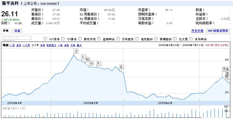 網絡版專稿 記者 鄧美玲 短短3個月的時間,股價從13塊暴漲至53塊,漲幅在達300%多。7月10日,僅僅10分鐘里,股價便從32.51元直線下跌至27.58元,暴跌15%。用妖股來形容隆平高科一點也不為過,為什么這個經營環境仍處于困難期的公司股價卻如何蹊蹺?