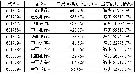 十大“最賺錢公司”相比一季度股東數變化狀況