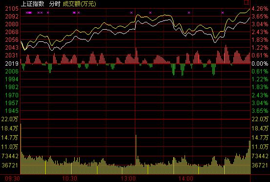 滬市開盤報2049.16點,最高2091.28點,最低2038.19點,收盤報2090.77點,漲3.57%;深市開盤報7363.65點,最高7563.46點,最低7347.99點,收盤報7528.63點,漲3.43%。