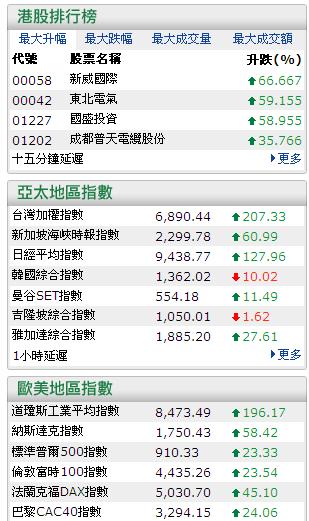 - · 美股、歐股結束連續下跌 各指數周一均上漲 | 2009-11-24