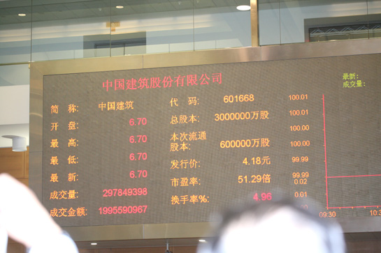 先揚后抑 中國建筑上市首日遭遇大盤震蕩