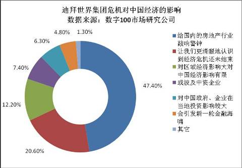 根據數字100的調查,47.4%接受調查的中國投資者認為,迪拜危機給國內的房地產行業敲響警鐘;另有20.6%的投資者認為,此事件的最大啟示是讓世界更清醒地認識到,經濟危機還遠未結束。但是,只有4.8%的投資者認為迪拜危機將會引發新一輪的金融海嘯。