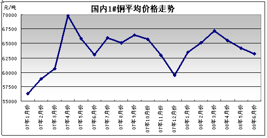網絡版專稿 記者 張婷 商務部市場運行調節司今日發布的消息顯示,近期國內銅價繼續振蕩下挫。據監測,6月份,國內1#銅平均價格為63153元/噸,較5月份下降1.5%,4月份以來,國內銅價已經連續3個月回落。