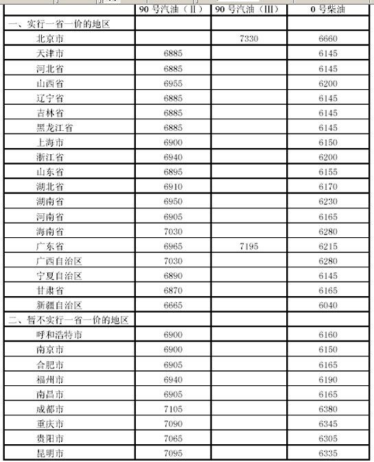 附圖二:各省區市和中心城市汽、柴油最高零售價格表(單位:元/噸)