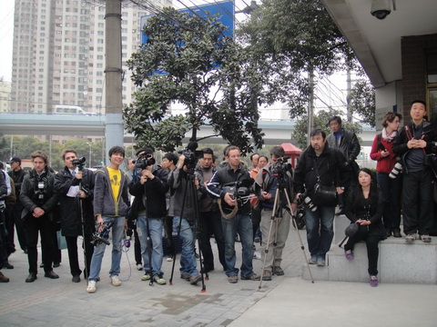 從早上8點到下午17:30堅守在法庭外的中外媒體記者