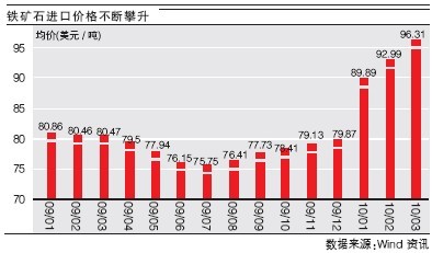 - 鐵礦石三大巨頭收緊發貨 價格漲三成 2010-04-19
