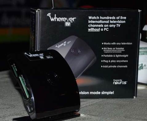 記者注意到,這款WhereverTV接收機外觀如路由器大小,只需要將其一頭插入網線,一頭插入電視機,就可以使用。WhereverTV接收機還配有一個遙控器,調換電視臺只需通過這個遙控器操作即可實現在電視上觀看全球電視節目以及網絡視頻。