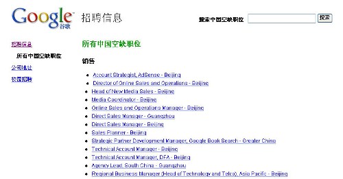 這是自谷歌揚言要關閉中文搜索引擎以來首次刊登招聘廣告。此次所提供的39種職位主要集中在銷售和市場部門,其他職位則與產品研發和法律有關。
