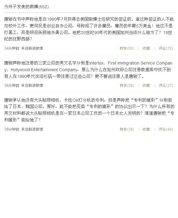 - 方舟子微博質疑唐駿留學經歷造假 2010-07-05