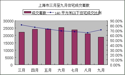 7月成交量環比下降,持續至9月,住宅成交套數已不足2萬套,甚至遠低于3月的成交量。相應的,住宅成交價格超過去年同期,并逐月上漲。但此時,單價在2萬元以上的高端住宅的成交量保持高位,中端住宅的購買力保持平穩,而單價在1萬元以下的住宅成交量下降。