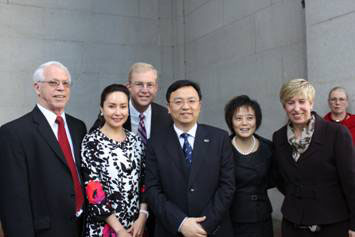 圖中從左至右依次為,洛杉磯長灘世貿中心組織總裁包萬斯,洛杉磯郡行政長官夫人胡惠玲,洛杉磯郡經濟發展局總裁兼首席執行官威廉.艾倫,比亞迪公司總裁王傳福,比亞迪公司高級副總裁李柯