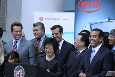 經濟觀察網 記者 王芳 5月1日,王傳福與加州州長阿諾德施瓦辛格,以及洛杉磯市市長安東尼奧維拉萊戈薩一起,在洛杉磯市市政廳正式宣布,比亞迪將在洛杉磯市市中心建立其北美總部。